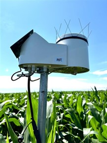 METOS soil moisture sensor base station with an optional rain bucket attached.