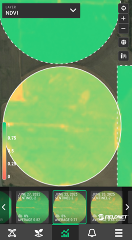 Water is one of the most valuable inputs in agriculture and one of the most complex to manage. With increasing pressure on water resources and rising input costs, growers are looking for smarter ways to irrigate. That’s where FieldNET Advisor™ comes in. It is a digital irrigation management tool that uses satellite imagery, weather data, and crop models to help growers decide when, where, and how much to irrigate. FieldNET Advisor monitors crop status and water use across all FieldNET™-connected fields in an operation and provides clear, easy-to-use recommendations that support more efficient and informed irrigation decisions.